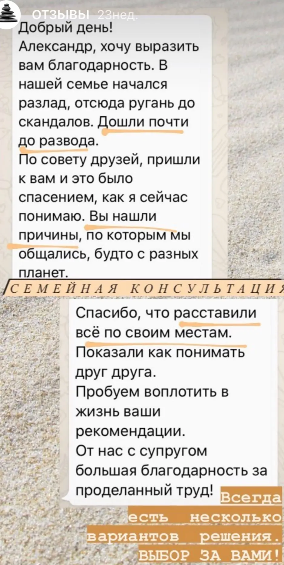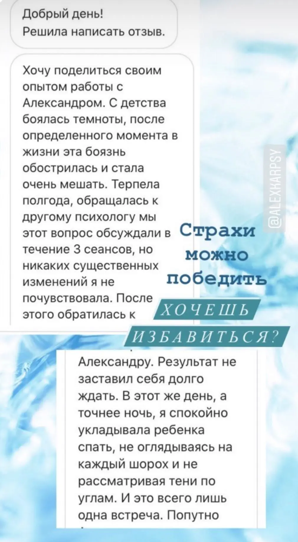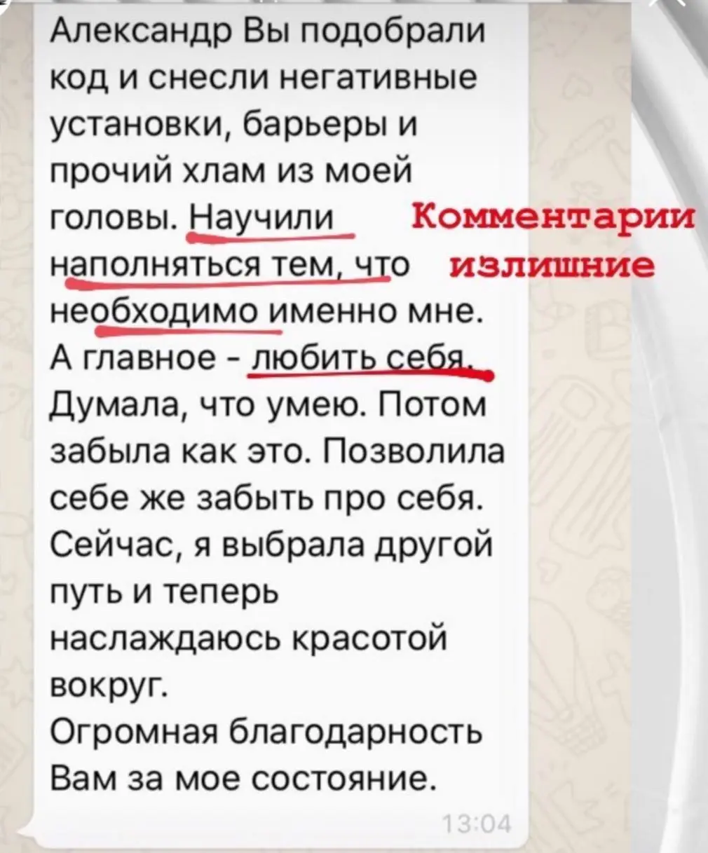 Я провожу онлайн консультации уже более 3-х лет. Благодаря новым технологиям люди из разных городов и даже стран имеют возможность получить помощь у понравившегося им специалиста, единственным условием для консультации - хороший интернет. А также условием является видеосвязь, чтобы я видел изменения, которые происходят с вами.